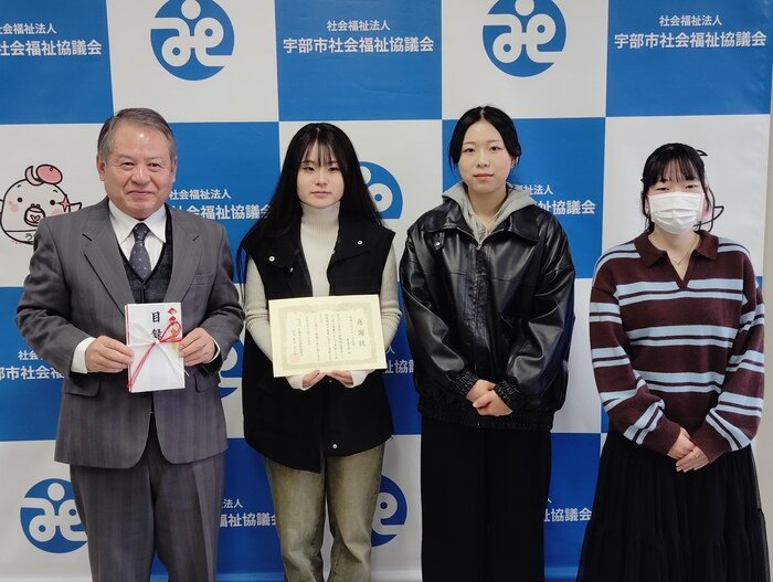 12月25日(木)、宇部フロンティア大学看護学部の学生の皆さんより、本会へご寄附をいただきました。「宇部市で生活に困っている方のお役に少しでも立ちたい」という想いから、学部内に募金箱を設置し、学生や教職員の皆様に協力を呼びかけてくださったとのことです。心のこもったご寄附は今年で3回目となります。お預かりした浄財は、宇部市の地域福祉事業の推進のために大切に活用させていただきます。温かいご支援、誠にありがとうございました。