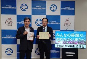 ご寄附いただいたデジタルサイネージは、宇部市福祉ふれあいセンター1階に設置し、館内行事予定の掲示や地域住民への福祉に関する啓発活動を行い、誰もが安心して暮らせる地域共生社会の実現に向け活用させていただきます。誠にありがとうございました。